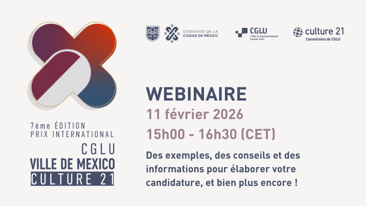 Le 11 février 2026, de 15h00 à 16h30 (CET), nous organiserons un webinaire exclusif sur la 7e édition du Prix international CGLU - Mexico - Culture 21.